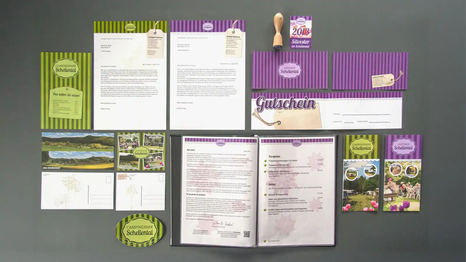 Im Rahmen meiner Bachelorarbeit entwickelte ich 2014 eine neue Corporate Identity für den Gasthof Schellental und Campingpark Schellental – ein traditionsreiches Familienunternehmen mit über 70 Jahren Geschichte. Ziel war es, das authentische, naturverbundene und familiäre Gefühl des Ortes in ein modernes, stimmiges Erscheinungsbild zu übersetzen. Da es mein Familienunternehmen ist, betreue ich diese beiden Unternehmen seitdem.